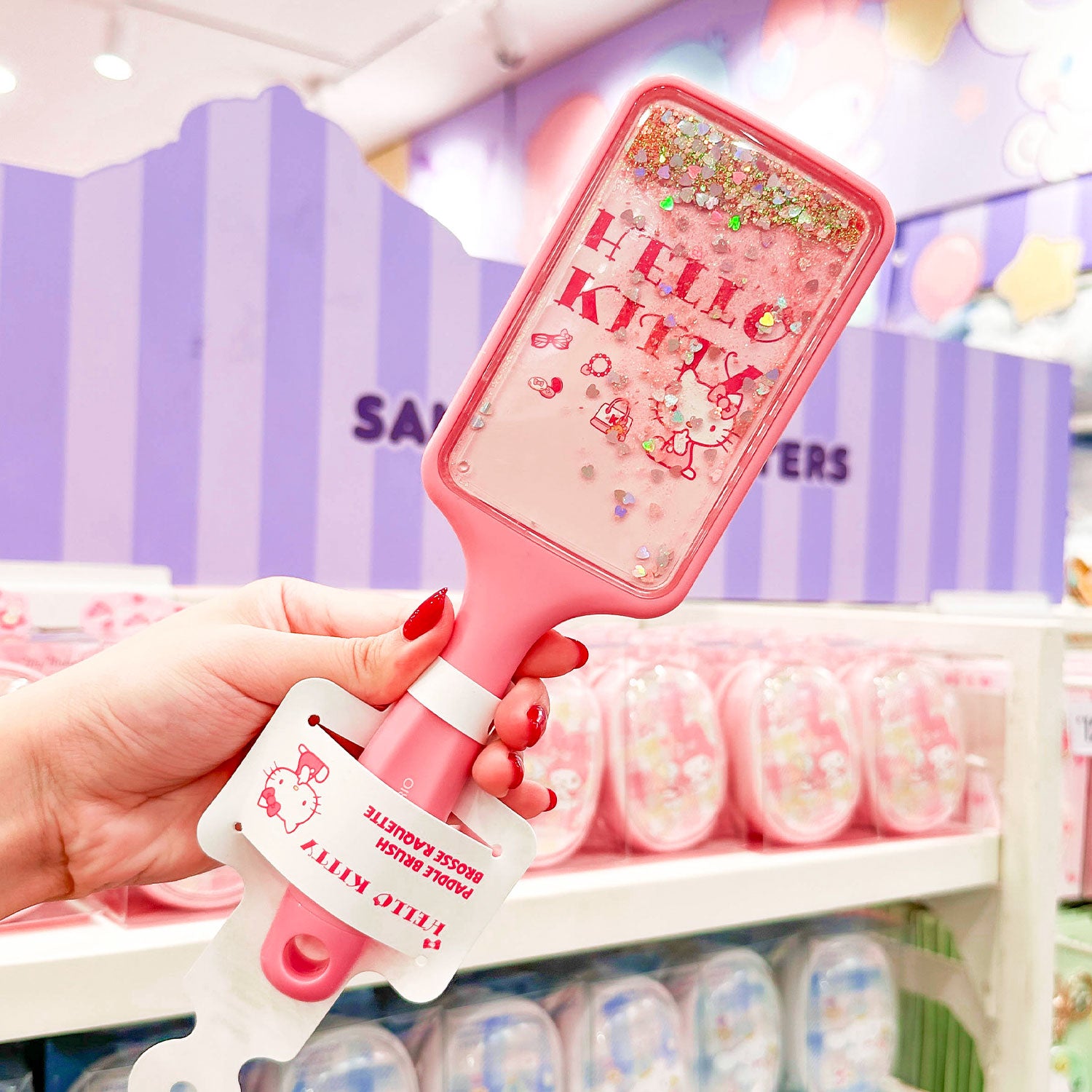 The MINISO Hello Kitty Beauty Diary Series Square Paddle Brush features a cute Hello Kitty design and is perfect for detangling and styling hair. With an ergonomic handle for a comfortable grip, it’s an essential beauty tool that adds a playful touch for Hello Kitty fans!
