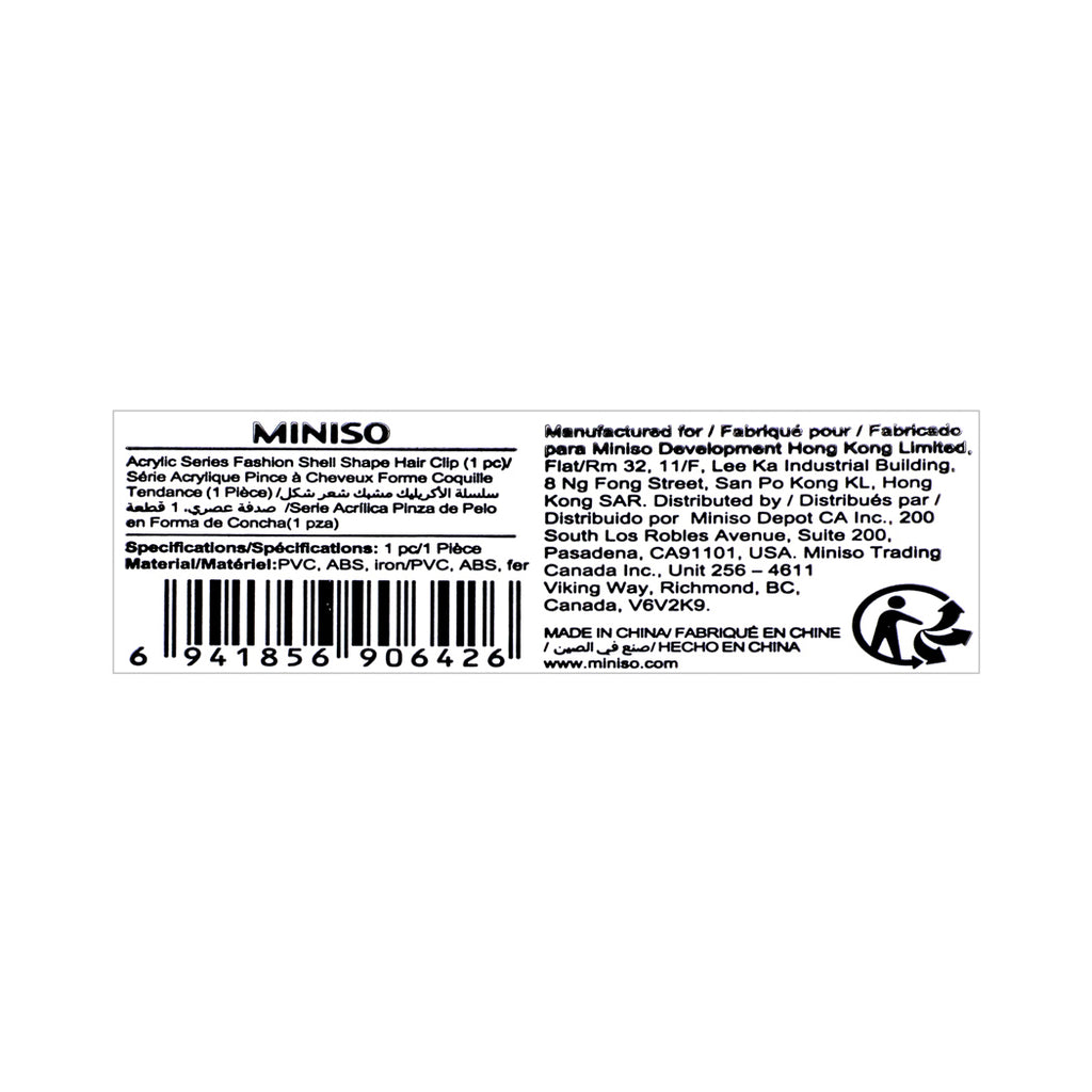 MINISO Acrylic Series Fashion Shell Shape Hair Clip 1 pc
