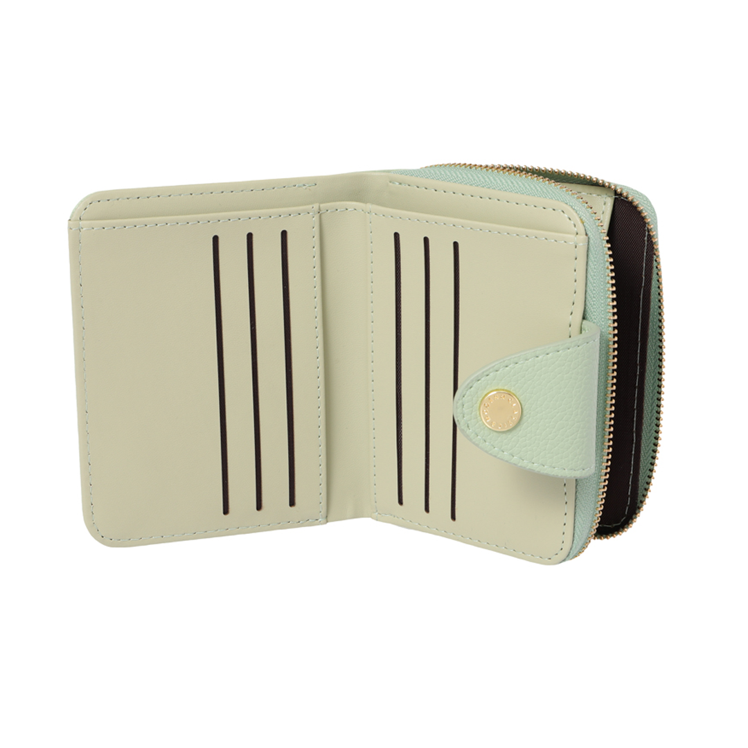 Stay organized in style with this compact bi-fold wallet in a fresh green hue. Featuring a secure zipper closure and multiple compartments, it’s perfect for holding your cards, cash, and essentials with ease. Functional, fashionable, and ready for everyday use!