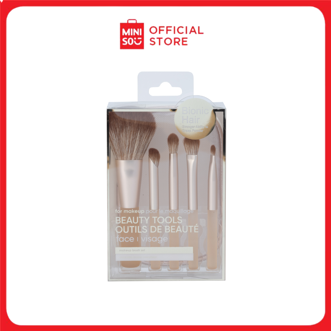 MINISO Makeup Brushes Set with Storage Bag (5 pcs, Gold) offers a stylish and functional solution for all your makeup needs. This set includes five essential brushes designed for precise application of foundation, blush, eyeshadow, and more. Each brush features soft, high-quality bristles and a sleek gold handle for a luxurious feel. The included storage bag keeps your brushes organized and protected, making it ideal for home use or travel. Elevate your makeup routine with this chic and practical brush set.